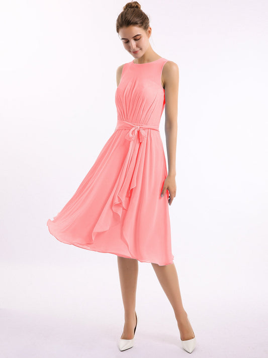 Babaroni IsobelVestido corto de chiffon con cuello tipo scoop y lazo de cinturón Flamenco