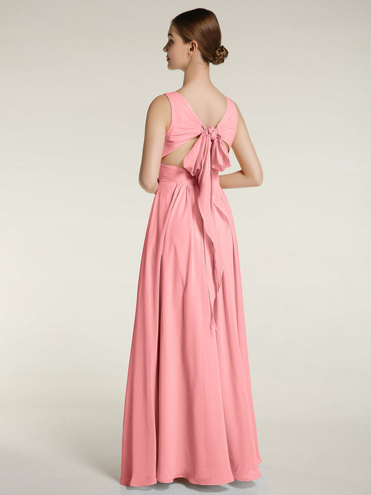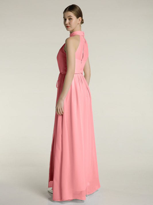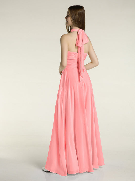 Babaroni JaneVestidos largos de chiffon estilo halter con lazo Flamenco