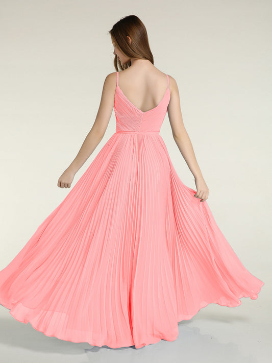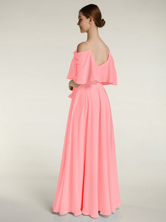 Babaroni MaudSencillos vestidos largos de chiffon con tirantes finos y abertura Flamenco