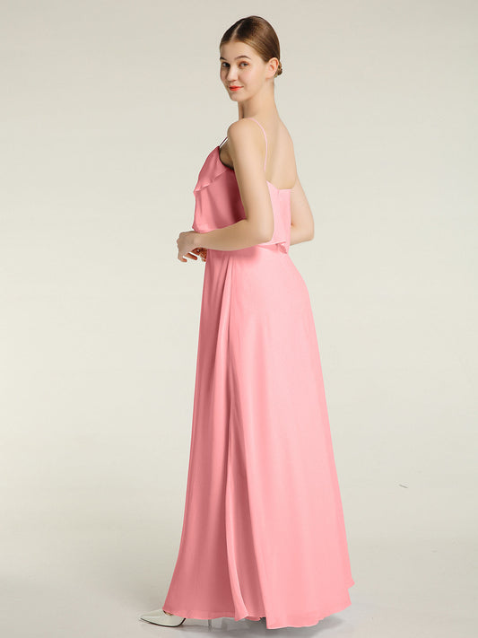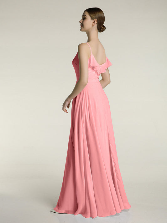 Fanny Cabestro Largo Gasa Vestido De Dama De Honor Flamenco