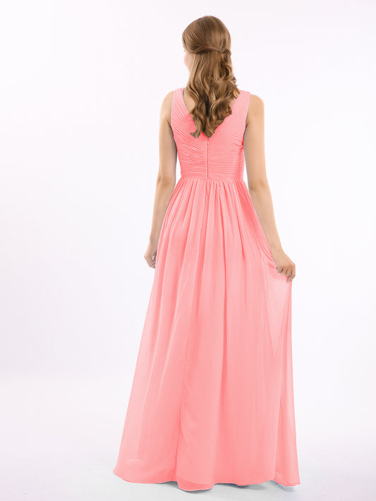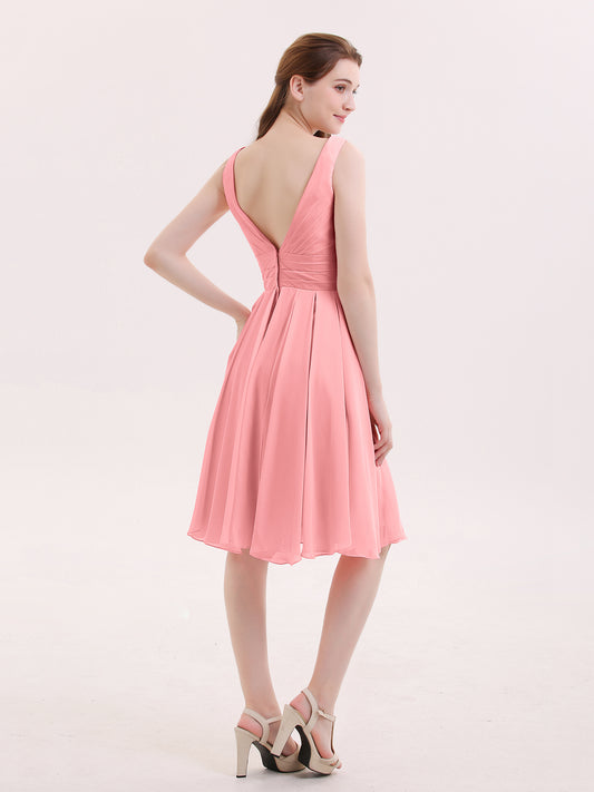 Vestidos de dama de honor de chiffon con escote en V y espalda cruzada Flamenco