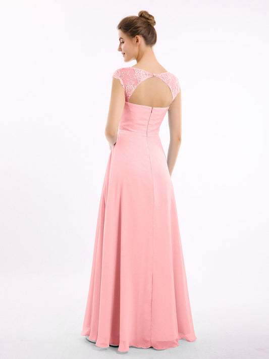 Vestidos de dama de honor de chiffon con mangas cap de encaje Flamenco