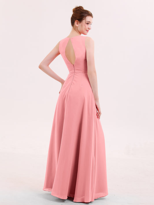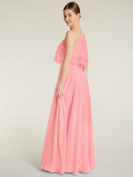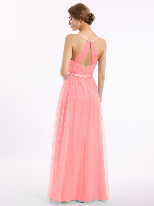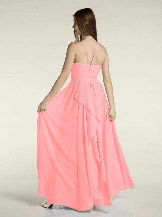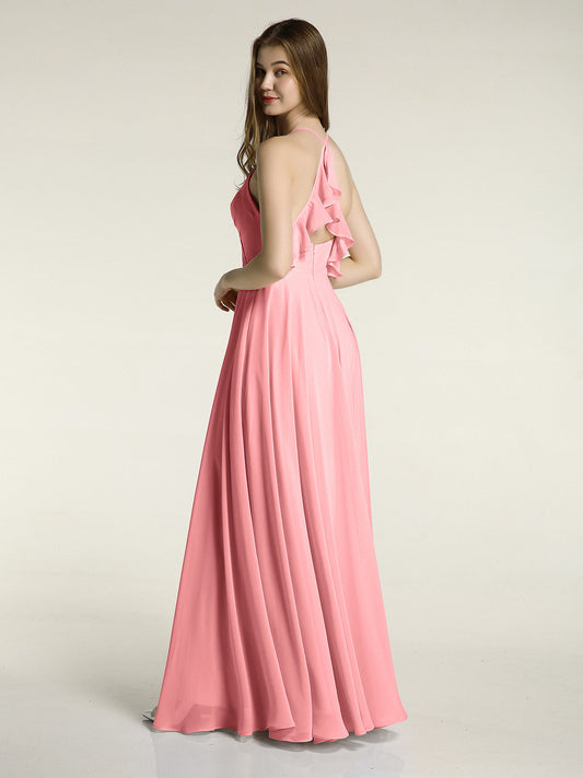 Vestidos largos de dama de honor estilo halter de chiffon Flamenco