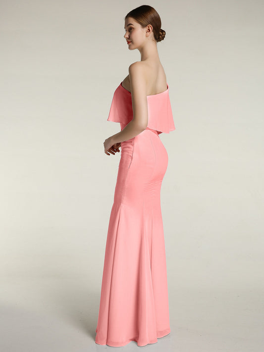 Maggie Un Hombro Gasa Largo Vestido De Dama De Honor Flamenco