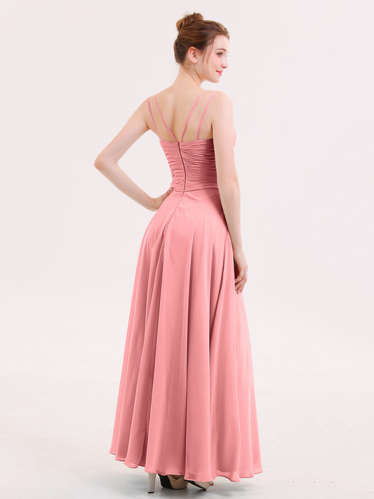 Vestidos de dama de honor de chiffon con tirantes finos Flamenco