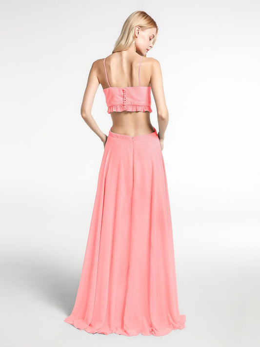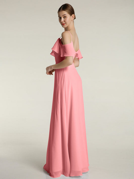 Babaroni AmyVestidos largos de dama de honor de chiffon con tirantes de cuello halter Flamenco