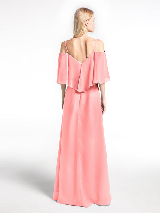 Babaroni JuliaVestidos largos de chiffon con tirantes finos y escote en V Flamenco