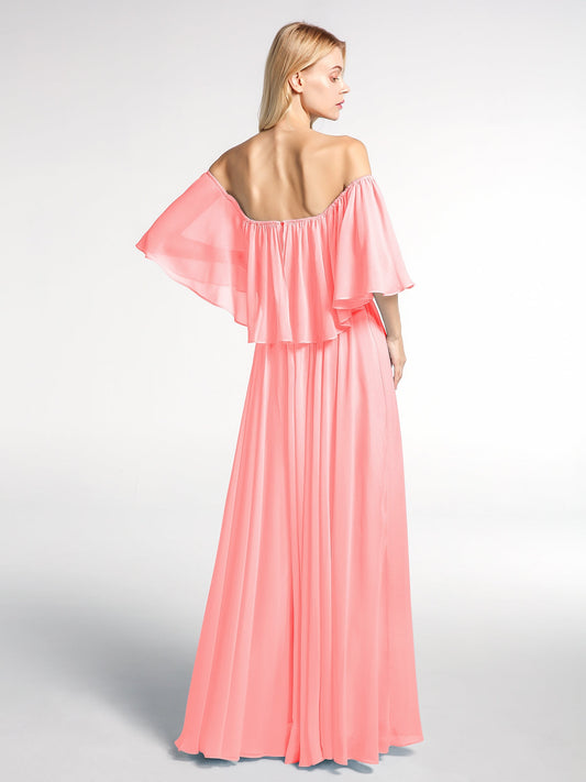 Babaroni RoseVestido maxi de chiffon con hombros descubiertos y volantes Flamenco
