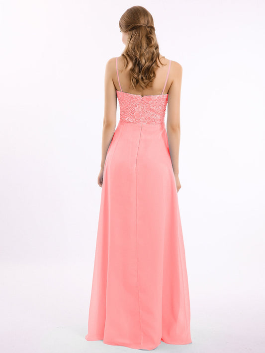 Babaroni CherryVestidos largos de encaje y chiffon con tirantes finos Flamenco