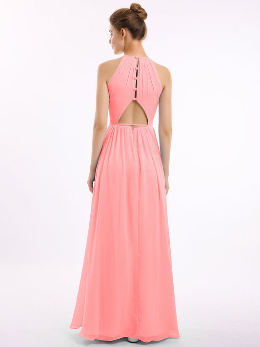 Babaroni CynthiaVestidos largos de chiffon estilo halter con espalda descubierta Flamenco