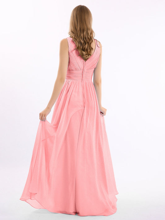 Babaroni LeeVestidos de dama de honor de chiffon con tirantes spaghetti y escote en V Flamenco