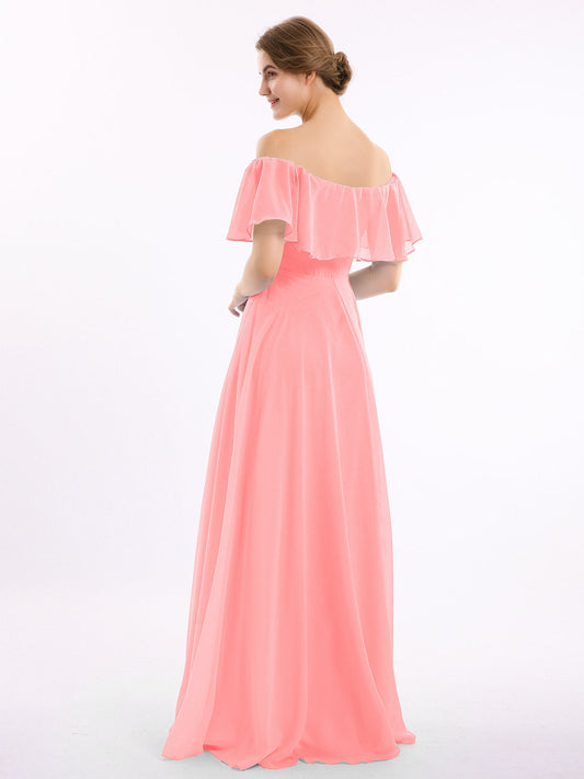 Babaroni HazelVestido largo de chiffon con hombros descubiertos Flamenco