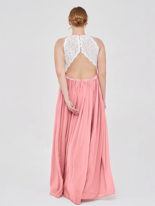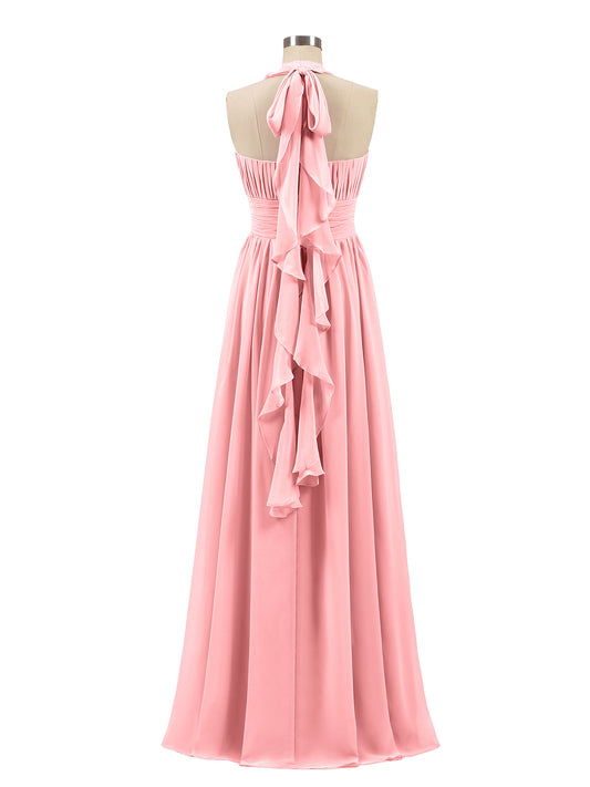 Babaroni JodieJodie Cabestro Cuello Alto Gasa Vestido De Dama De Honor Flamenco