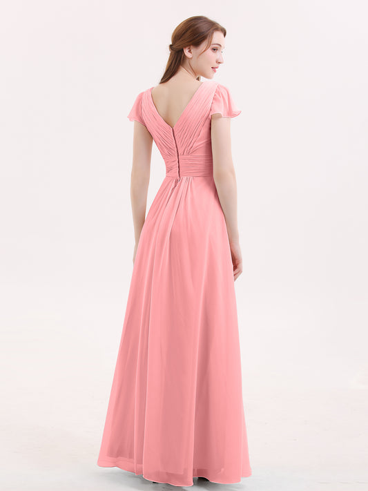 Babaroni GeorgiaGeorgia Escote En V Gasa Largo Vestido De Dama De Honor Flamenco