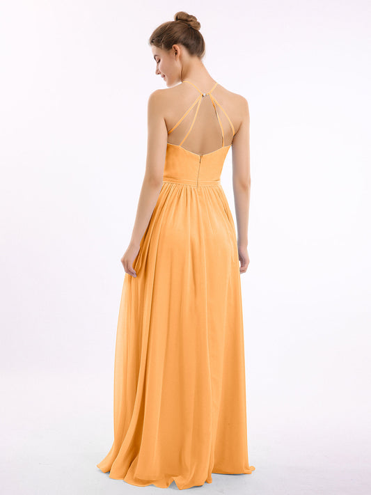 Babaroni LesleyVestidos largos de chiffon estilo halter con doble tirante Mandarina