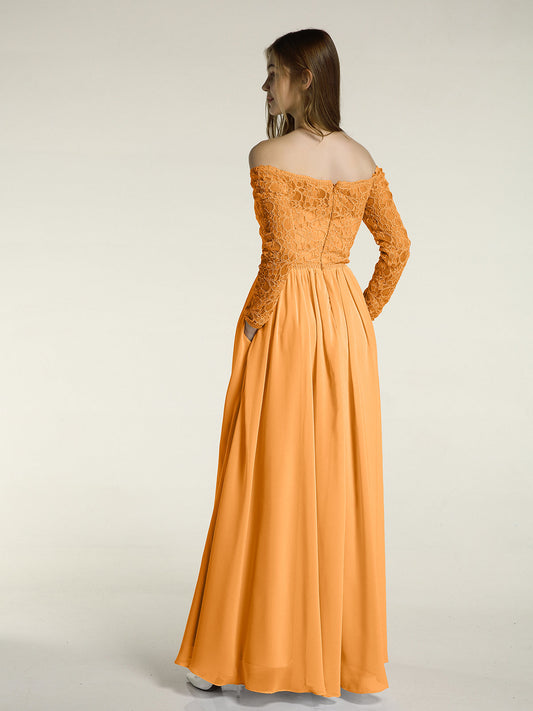 Vestidos de encaje y chiffon con mangas largas y bolsillos Mandarina