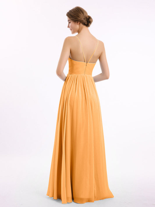 Babaroni TeaganVestidos de dama de honor de chiffon con tirantes finos y escote en V Mandarina