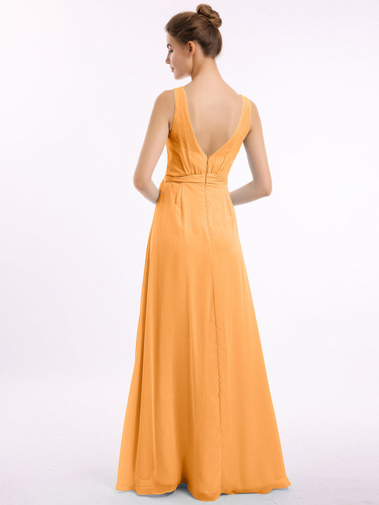 Babaroni LaurenVestidos largos de chiffon estilo princesa con abertura Mandarina