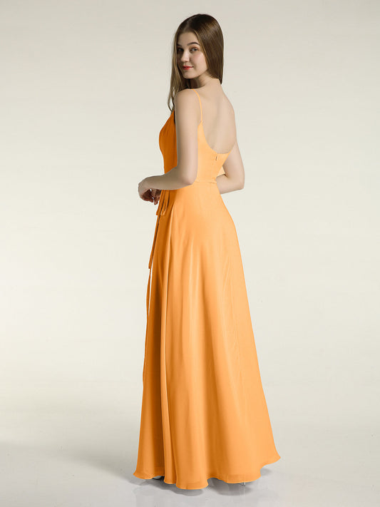 Babaroni MaudSencillos vestidos largos de chiffon con tirantes finos y abertura Mandarina