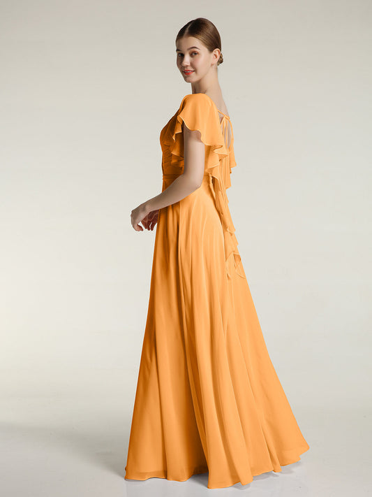 Babaroni JamieVestidos de chiffon con escote en V y mangas cap con volantes Mandarina
