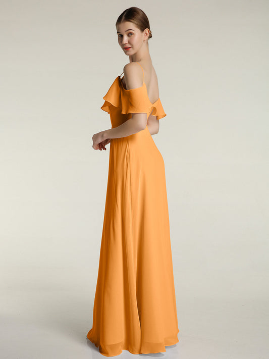 Babaroni MaudSencillos vestidos largos de chiffon con tirantes finos y abertura Mandarina