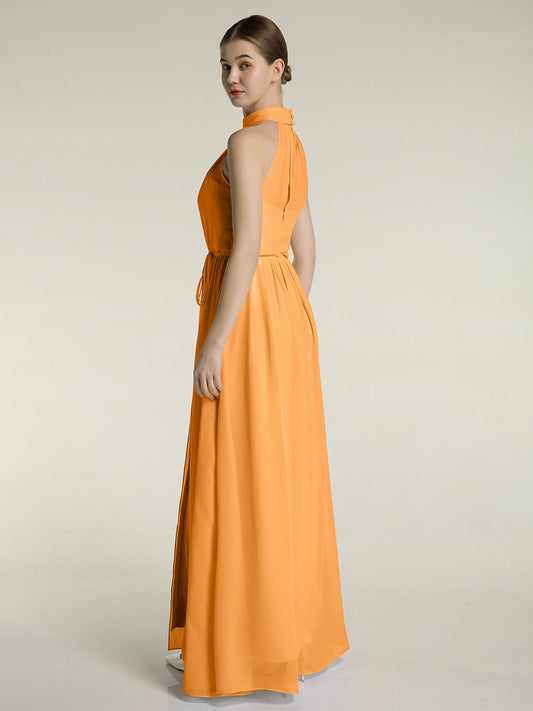 Babaroni JaneVestidos largos de chiffon estilo halter con lazo Mandarina