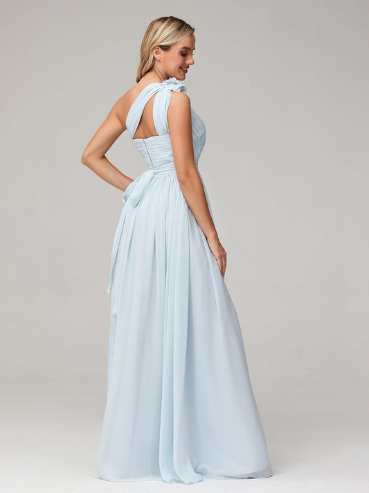 Babaroni LynnVestidos de chiffon con un hombro de flor y bolsillo Niebla
