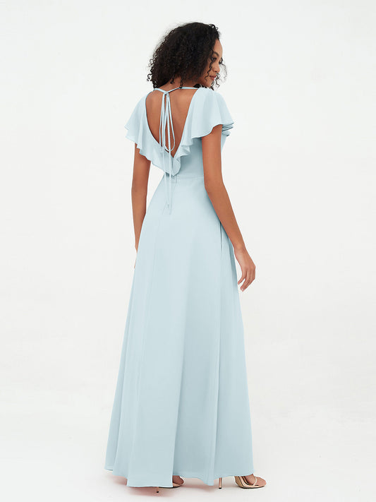 Babaroni PagVestidos estilo A-line de chiffon con escote en V y abertura Niebla