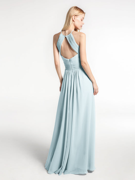 Babaroni IvyVestidos máximos de chiffon estilo halter con hombros descubiertos Niebla