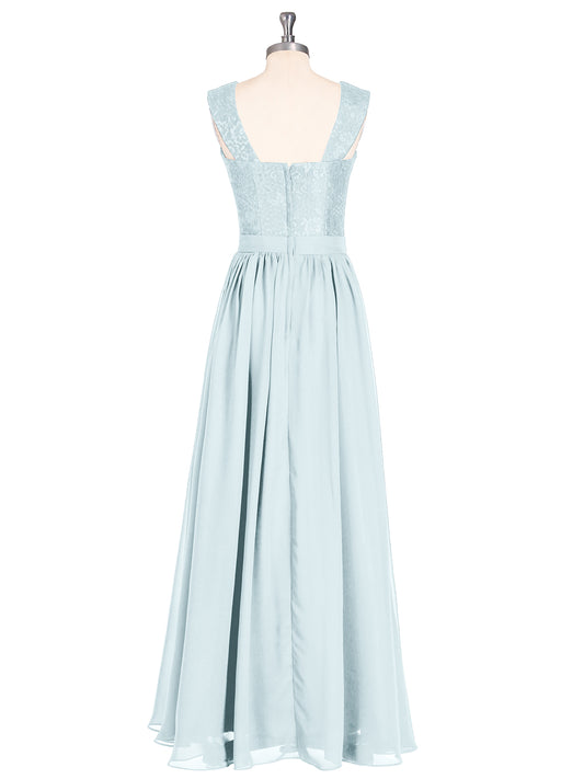 Babaroni VivienVivien Hombro Tirante Encaje Y Gasa Largo Vestido Niebla