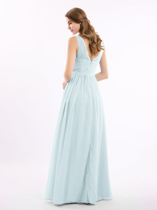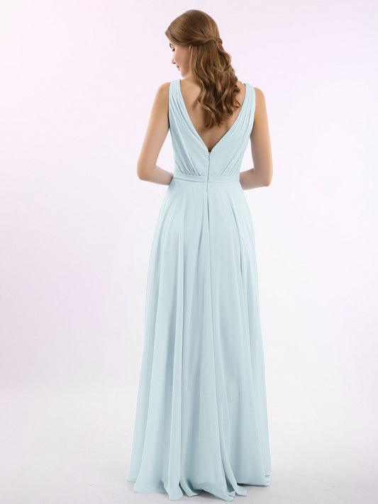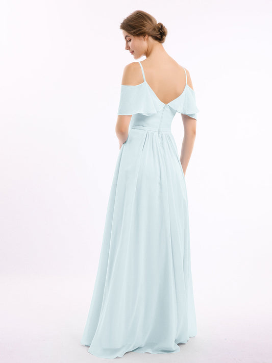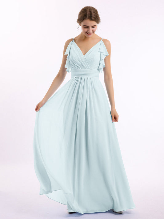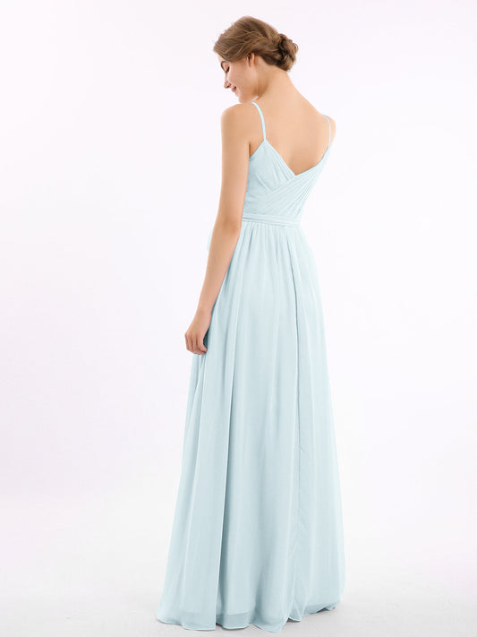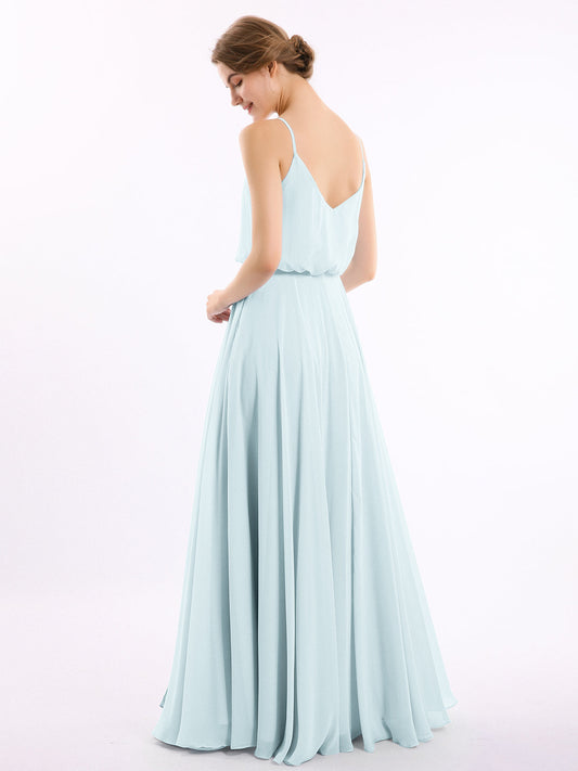 Babaroni VickyVestidos de dama de honor de chiffon con escote en V y tirantes finos Niebla