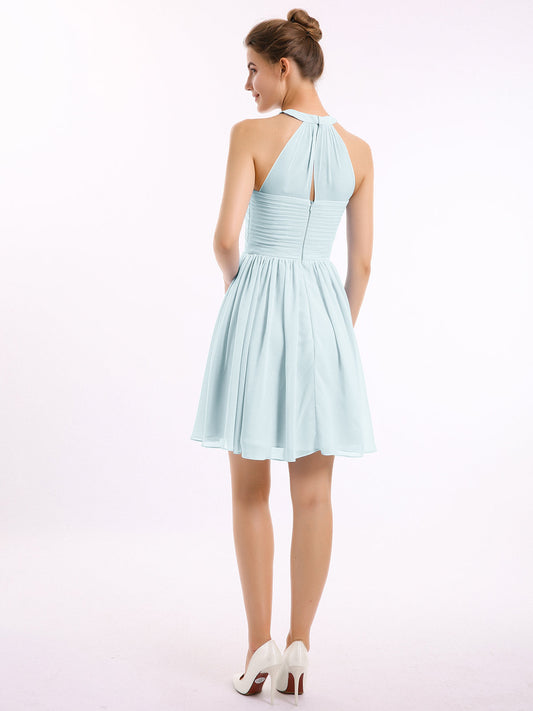Babaroni KyreneVestidos cortos de chiffon estilo halter para damas de honor Niebla