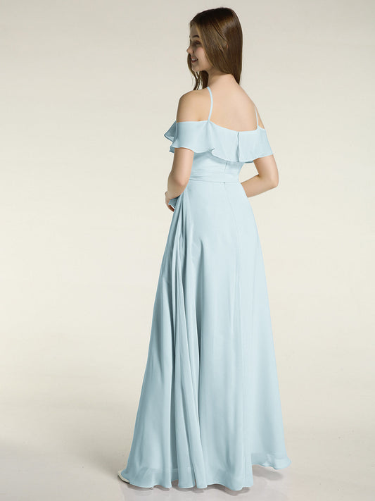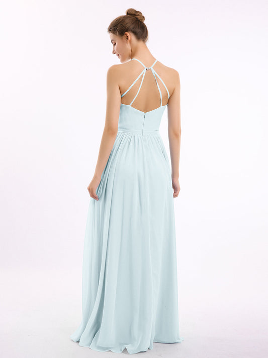 Babaroni LesleyVestidos largos de chiffon estilo halter con doble tirante Niebla