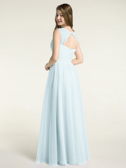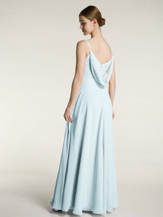 Agrega una sensación de magia a tu boda con nuestra impresionante colección de vestidos de dama de honor en tono azul grisáceo. Estos tonos suaves y delicados de azul y gris crearán una atmósfera romántica y etérea.