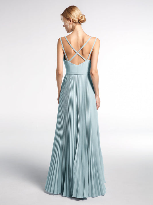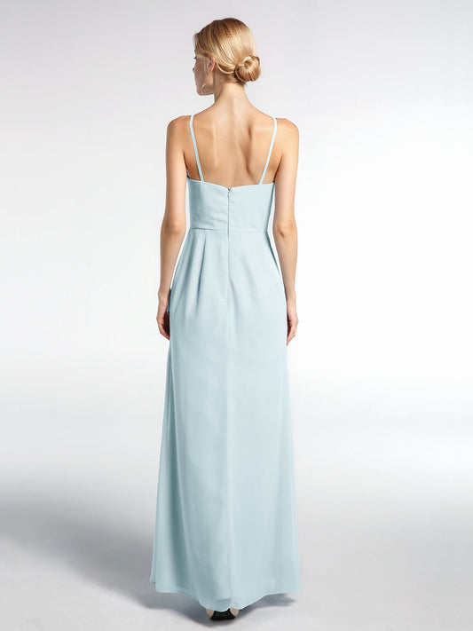 Babaroni NatalieVestido maxi simple de chiffon con escote en V y tirantes finos Niebla