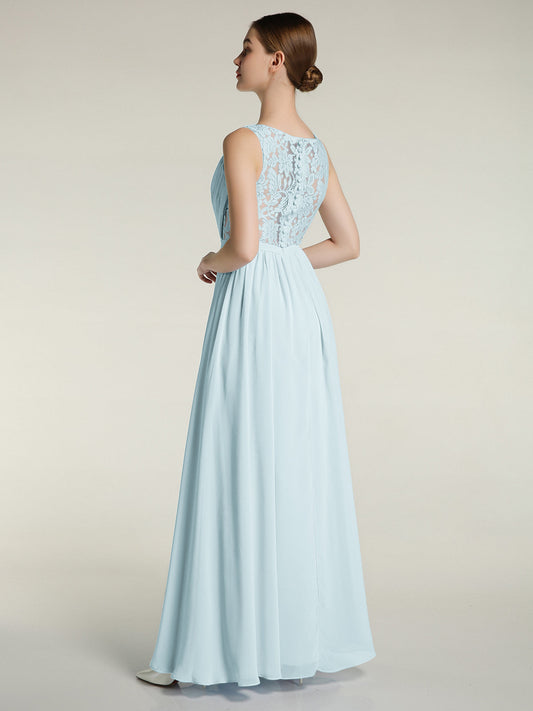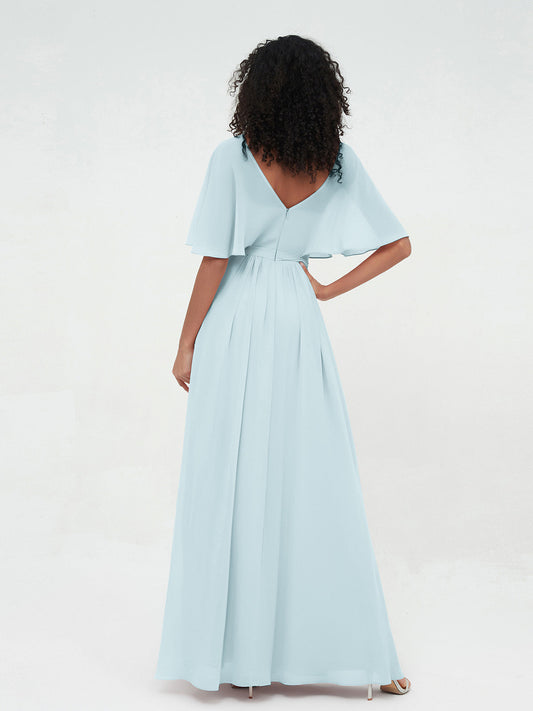 Babaroni MariaVestidos largos de chiffon de cuello en Y para damas de honor Niebla