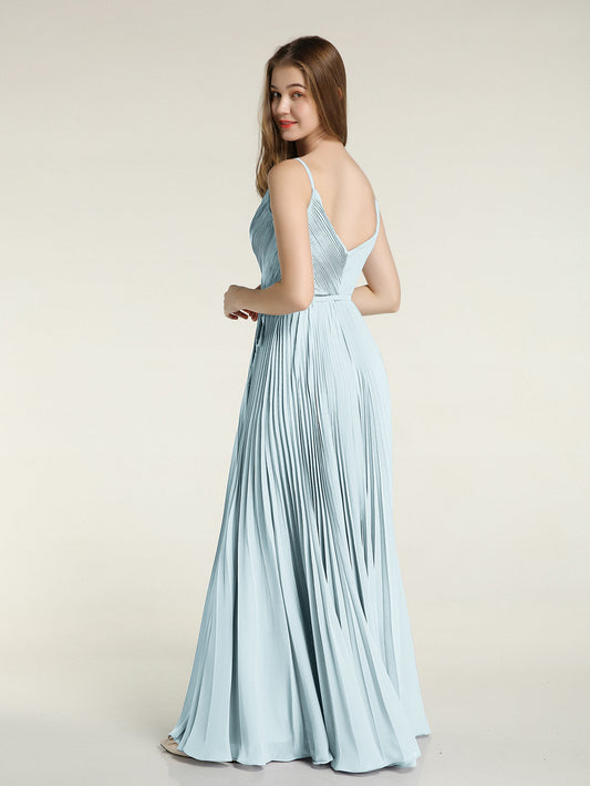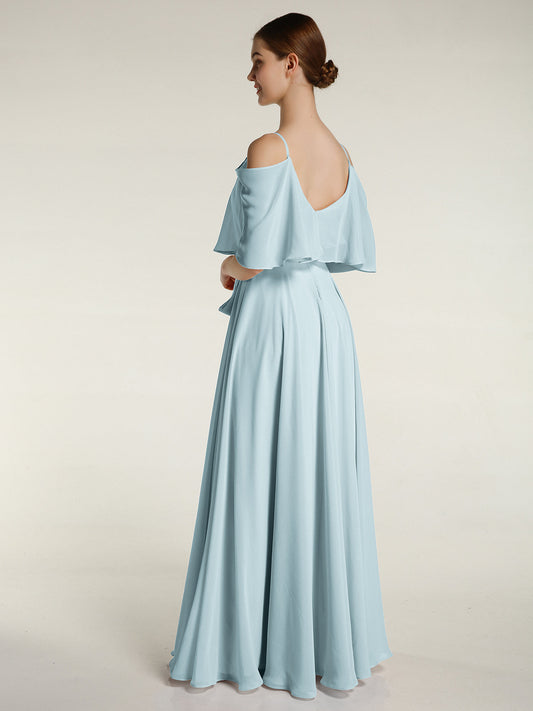 Babaroni MaudSencillos vestidos largos de chiffon con tirantes finos y abertura Niebla