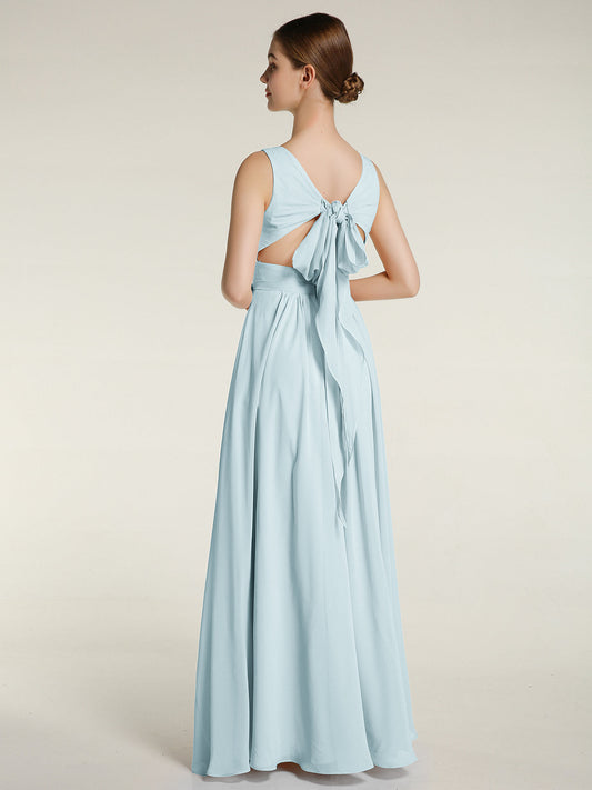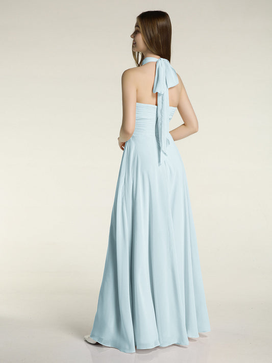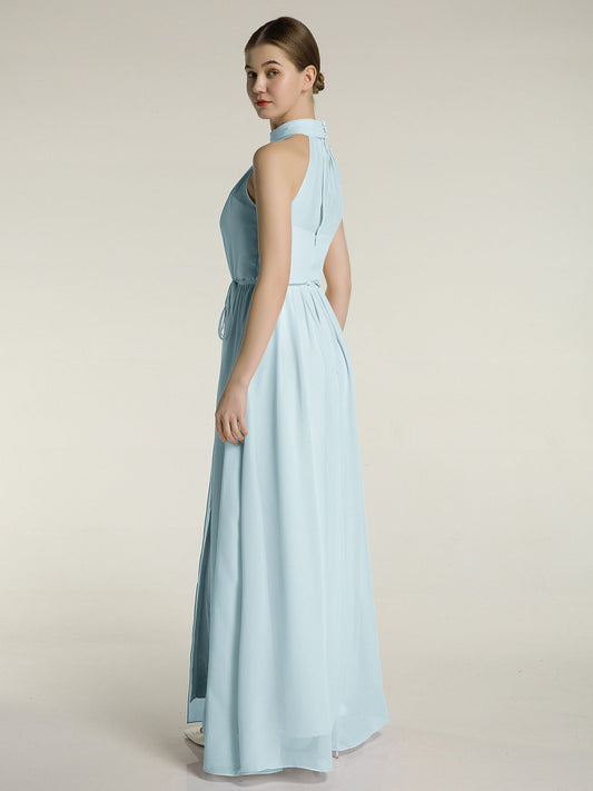 Babaroni JaneVestidos largos de chiffon estilo halter con lazo Niebla