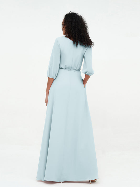Babaroni UnaVestidos máximos de chiffon con escote en V profundo y mangas 1/2 Niebla