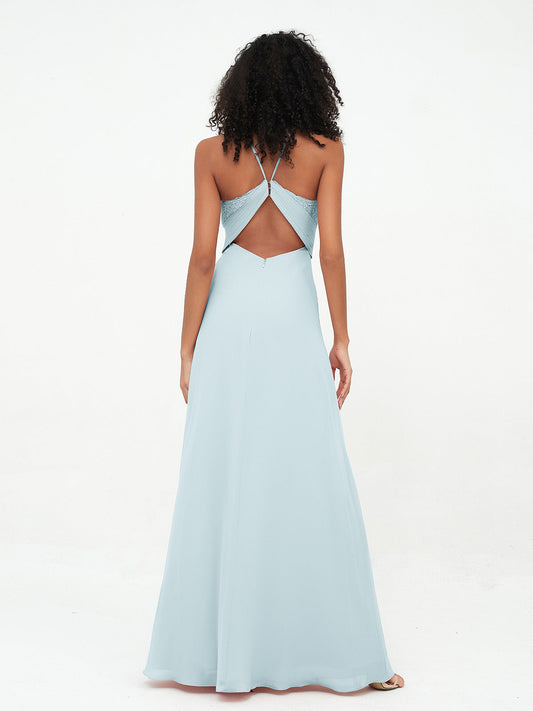 Agrega una sensación de magia a tu boda con nuestra impresionante colección de vestidos de dama de honor en tono azul grisáceo. Estos tonos suaves y delicados de azul y gris crearán una atmósfera romántica y etérea.