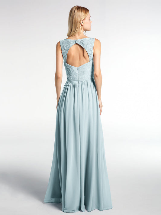 Babaroni LaraineVestido maxi con cuerpo de encaje y falda de chiffon con escote en V Niebla