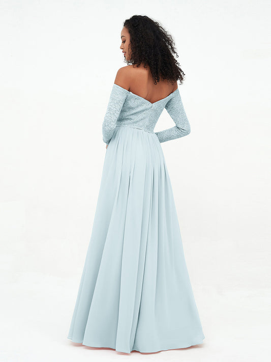 Babaroni JoannaVestidos largos de encaje con mangas largas y hombros descubiertos Niebla