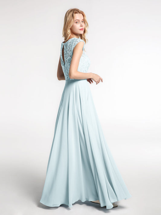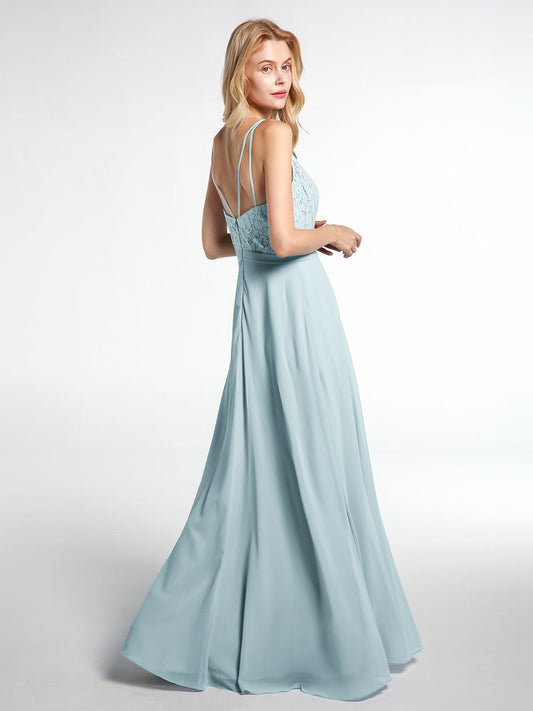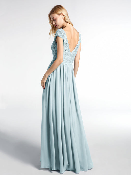 Babaroni HilaryVestido maxi de chiffon con escote en V y parte superior de encaje Niebla