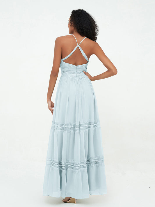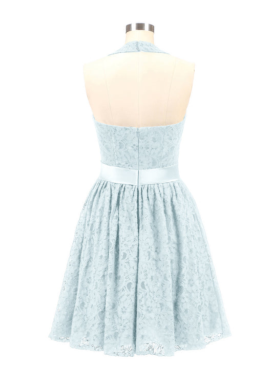 Babaroni FrancesVestidos de halter con top de encaje y espalda descubierta de gasa Niebla