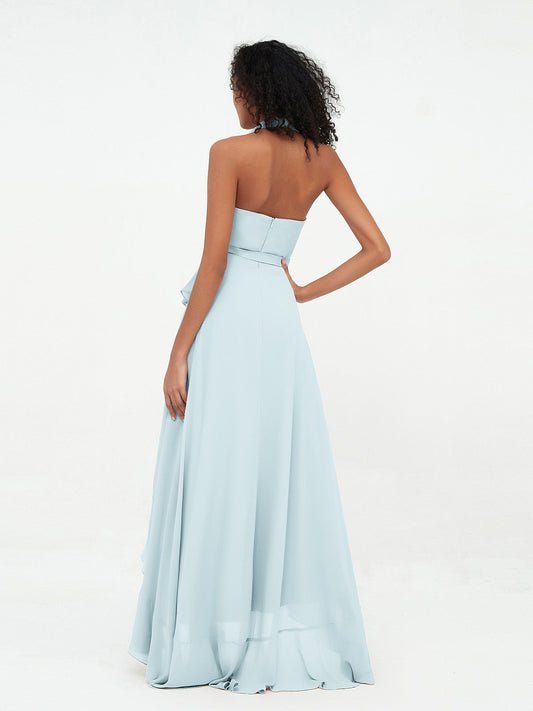 Babaroni VenusVestidos asimétricos de chiffon con cuello halter y escote en V profundo Niebla