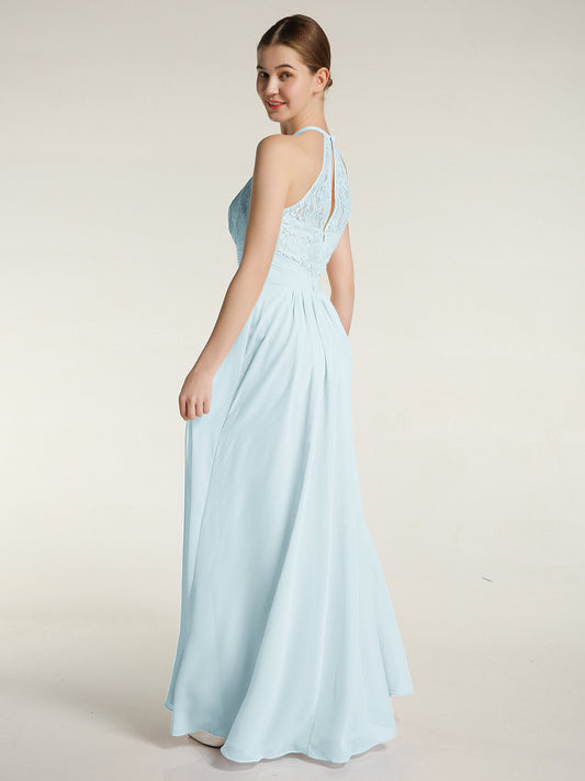 Babaroni AmandaVestidos largos de chiffon y encaje estilo halter Niebla