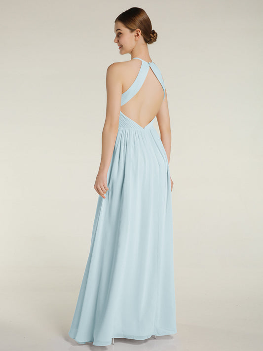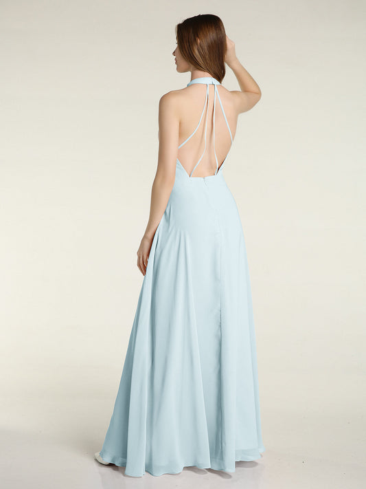 Babaroni TheraVestidos largos de dama de honor estilo halter de chiffon con espalda baja Niebla