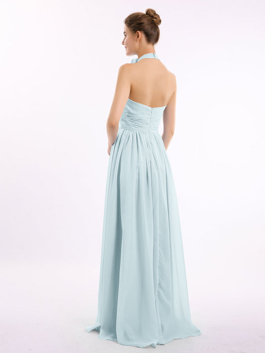 Babaroni MandyVestidos largos de chiffon estilo halter para damas de honor Niebla
