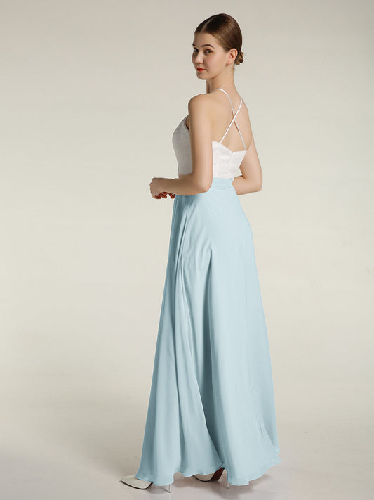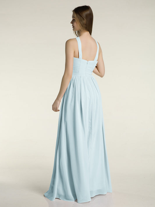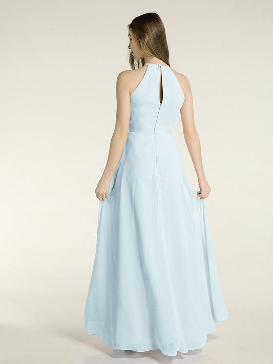 Babaroni MiriamVestidos largos de dama de honor estilo halter de chiffon Niebla