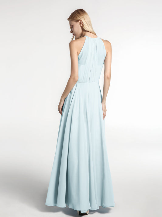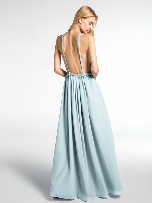 Babaroni AmyVestidos largos de dama de honor de chiffon con tirantes de cuello halter Niebla